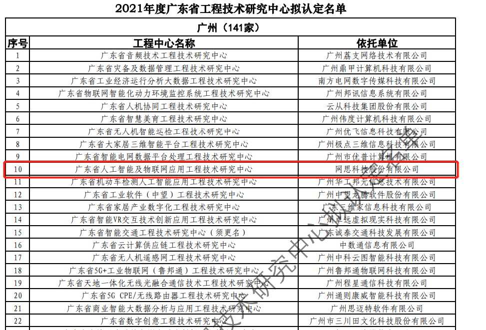 日前,广东省科技厅发布2021年度广东省工程技术研究中心名单。经过层层筛选、专家评审,依托完美官方网页版建设的“广东省人工智能及物联网应用工程技术研究中心”榜上有名。广东省工程技术研究中心主要依托省内行业、领域具有科技实力的、拥有一定规模以上创新型企业建设,部分依托高校和科研院所组建。工程中心旨在